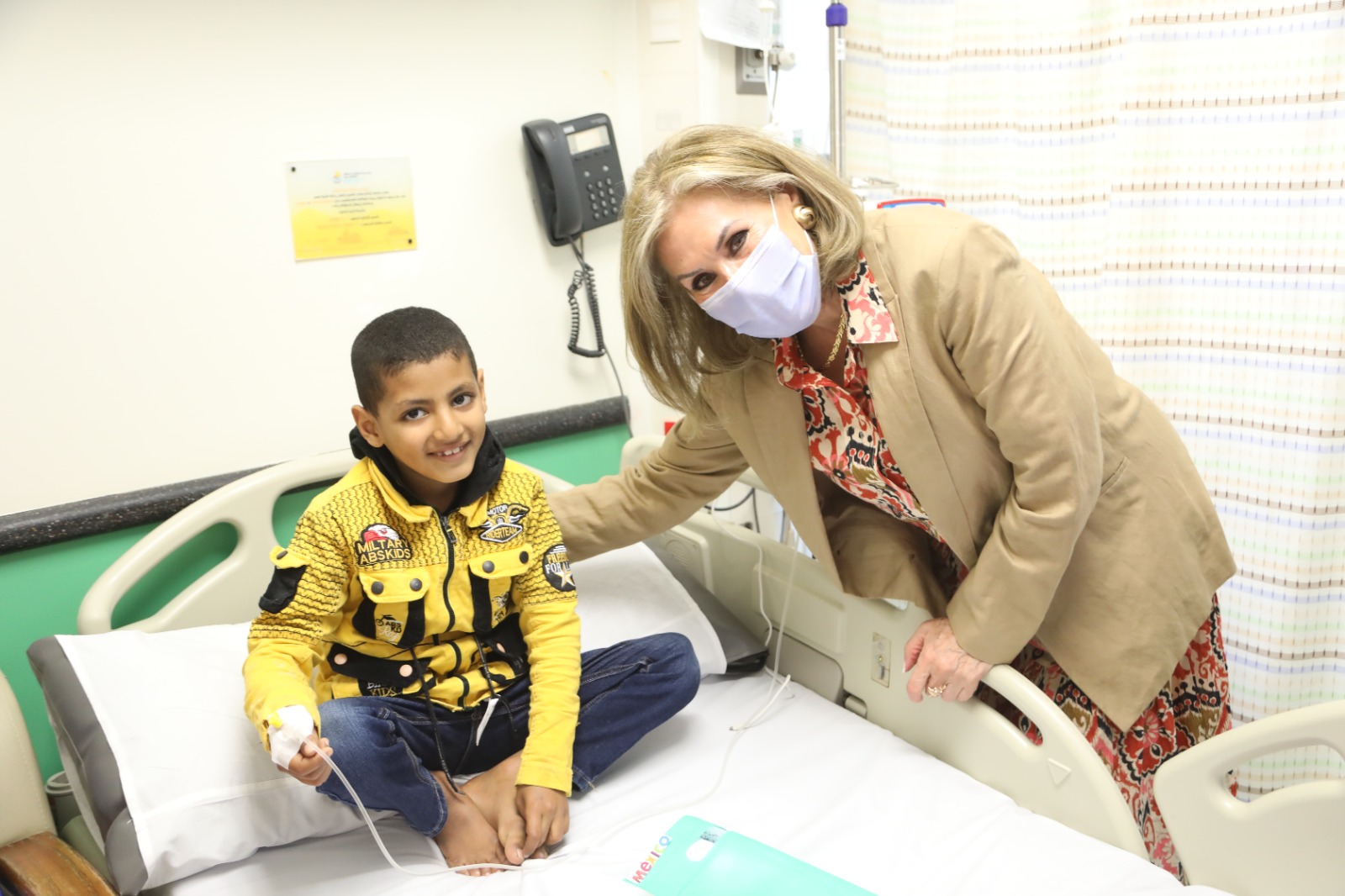 كان فى استقبالها ا.د شريف ابو النجا الرئيس التنفيذى لمجموعة 57357 و مدير عام المستشفى , وقد قامت سيادتها بجولة شملت أقسام المستشفى المختلفة منها السايبرنايف و المعامل و مركز الإبداع كما زارت أطفالنا فى الأقسام الداخلية منهم جومانة و فريدة و جويا و عز و أهدتهم هدايا جميلة تحتوى على الوان و رسومات لأطعمة مكسيكية ليقوم الاطفال بتلوينها وشرحت لهم معلومات عن اللوحات المطلوب تلوينها و تمنت لهم جميعا الشفاء العاجل .