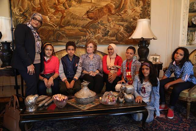 وقدم لها الأطفال بعدها بعض رسومهم ومنتجاتهم الفنية.. وسألوها عن استكمالها لدراستها العليا، وحصولها على الماجستير والدكتوراه، وعملها كأستاذة في جامعات مصروأمريكا، وأجابتهم بأنها تزوجت مبكرا قبل دخول الجامعة.. وتفرغت لتربية وتعليم أبنائها الأربعة علىأسس من الأخلاق والتدين وأداء الصلاة، وكذلك على احترام الأديان، وتقول لهم: “لكن كنت دايما باحلم أكمّل دراستي، وحينما كبر أبنائي التحقت بكلية الآداب قسم لغة عربية، وأنا في الأربعين، وكانت بناتي في نفس الكلية قسم لغة انجليزية، وابني يدرس الهندسة، وكانت المنافسة قوية، وكنت متحمسة للتفوق على بناتي، وذاكرت بجدية حتي نجحت وتفوقت، وقررت استكمال دراساتي العليا، لأن الإنسان المتعلم الناجح،تفتح أمامه كل الأبواب، وأكدت لهم أن قوة أي بلد تقاس بأبنائها المتعلمين، مشيرة إلى أنها بعد حصوها على الماجستير والدكتوراه في الأدب المقارن، درّست في جامعة القاهرة، ثم جاءتها عروض للتدريس في جامعة ميريلاند، حيث أسست كرسيا للسلام باسم أنور السادات، وتركت التدريس منذ 3 سنوات لتتفرغ لحياتها وأولادها وأحفاده”ا.