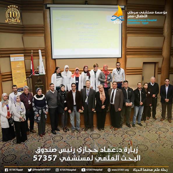 – ود.شيرين عبد المعز- رئيسة البرامج الدولية بالصندوق- وكان فى استقبالهما الرئيس التنفيذى لمجموعة 57357 مدير عام المستشفى، وكذلك رئيس قسم البحث العلمى، وأعضاء القسم ولفيف من قيادات المستشفى .