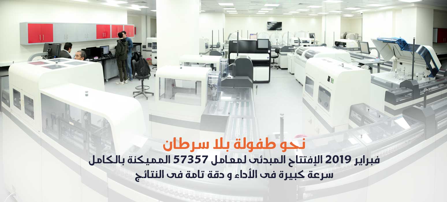 All Hospital departments including the department of clinical pathology work in sync towards fulfilling the vision of the 57357 Institution, which is the achievement of a childhood free of cancer. As such, 57357’s laboratories have translated this commitment into the objective of increasing the accuracy and speed of their performance. For that purpose, they sought to expand their capacity through the installation of a totally automated lab. The new lab with increased capacity is fully equipped with hematology analyzers, chemistry lab equipment, viruses’ testing equipment, and coagulation analyzers.
