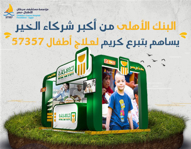 The National Bank of Egypt, NBE, is one of 57357’s main charity partners. Throughout the years, since the Hospital establishment, it has been one of its strong supporters, who contribute to its stability and the sustainability of its mission. NBE was the second bank to dedicate a bank account to collect donations for the Hospital’s project during its implementation phase..Back then, NBE was one of the main sponsors of various marathons for the collection of funds for the completion of the project. Throughout the years, the charity journey was manifested in its participation in the naming opportunity/ ongoing sadaka donation programs, its contributions to the Hospital’s expansion and its funding of medical equipment and medications for our patients. Added to this, one should not forget the continuous visits of the Bank’s management and staff and their role in lifting up our children’s spirits through participating in a variety of activities such as the marathon, Ramadan Eftar and decorating the Hospital for feasts and other occasions.