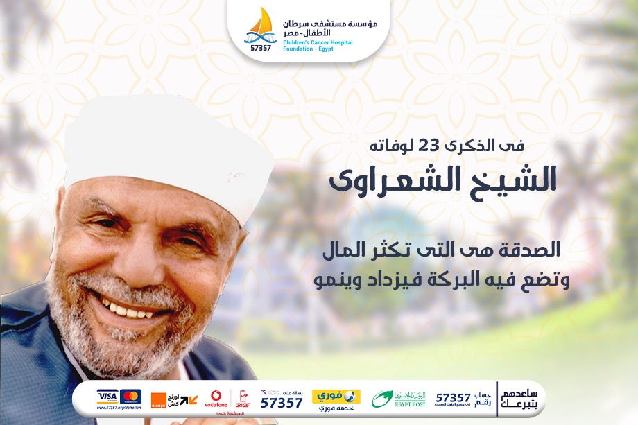 The story takes us back to the end of the eighties, when the National Cancer Institute, NCI, was suffering from severe shortages in equipment and supplies and high mortality of sick children with cancer. One day the institute witnessed the death of 13 sick children out of 16 in the department. The department’s young doctor, Dr. Sherif Abuel Naga felt helpless. He sadly left the institute while determined to resign. At this time he thought about sheikh Alsharawi who used to go to a restaurant nearby the institute. He went there to find the great sheikh with three of his friends, Abdullah Salam, Ahmed Abu Shakra and Ahmed Abdullah Teama. The doctor joined them and started telling them about the department’s difficult conditions. Right away, each of the four friends decided to donate 50 pounds on a monthly basis to fix the department’s shortcomings and buy medical supplies.