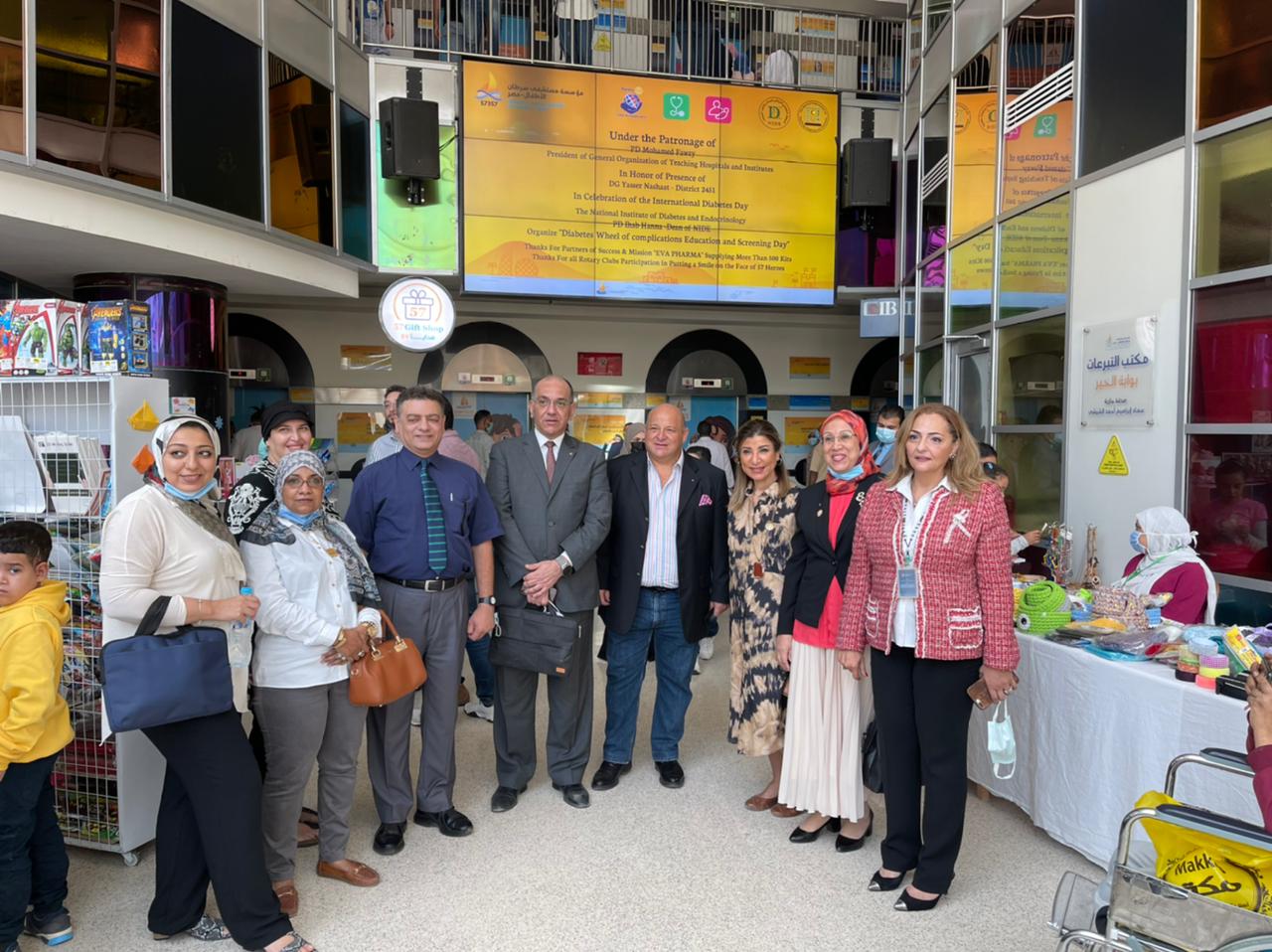 The day was organized under the patronage of the Hospitals’ Educational Authority, under the slogan “your health matters, take the test and get reassured”, and in attendance and supervision of Dr. Ehab Nabil Hanna the institute’s dean. The event was brought together by Dr. Sherif Abdel Aal, Head of motherhood and childhood committee at the Rotary club and Dr. Aya Nassar, the committee coordinator. A group of diabetes physicians and experts in addition to the governor of Rotary region 2451 attended the event.