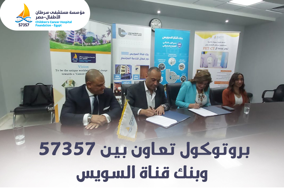 Today, June 21, 2022, a cooperation protocol was signed between 57357 and Suez Canal Bank, in attendance of Dr. Nour Alzeiny, head of corporate communication sector and social responsibility of Suez Canal Bank, the executive director of 57357 group, Mr. Ahmed Elfendi, executive director of the 57357 Foundation and the representatives of the Foundation’s banks outreach department