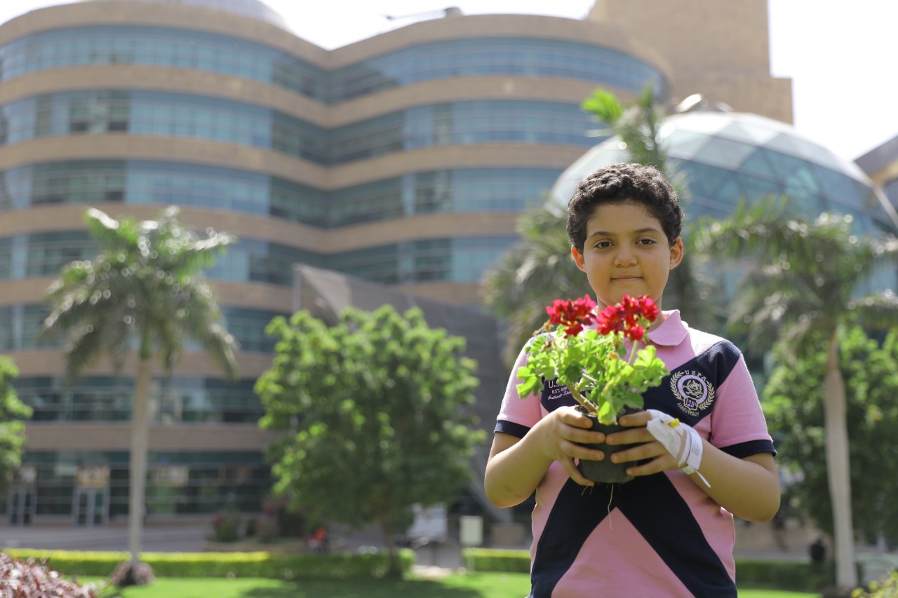 I approached them and asked his mother to give me a few minutes to show him the plants hoping that he would calm down. A few moments later, he was admiring the beautiful garden flowers and he had already forgotten he was sick.” said Mr. Mahmoud, the garden manager. After a few visits, Khaled decided to plant a flower in the hospital garden. Visit after visit, Khaled would run to see Mr. Mahmoud and his plant before doing his treatment and with every visit Khaled’s plant grew older and bloomed more just like him.