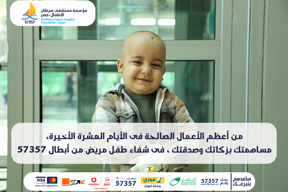 One of the worthy deeds during the last ten days would be to contribute with zakat and sadaka in favor of a sick child in 57357, to restore him to a normal life among family and friends, and bring back life to the whole family. At 57357, we are committed to the provision of excellent medical care to our patients and beyond: we are engaged in supporting them all the way till they reach the shores of cure and are restored the joy of living.