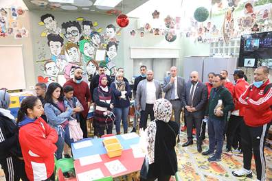 The team is visiting to share in morale support of our children. Among the visiting players there was Yasser Hanafi, Islam Hamed, Ahmed Algendi, Sherif Yasser, Haidi Adel, Salma Ayman and Amira Kandil. The team members expressed their delight for meeting our patients in the different Hospital sections and in the art therapy workshop. They expressed their admiration for the great psychological care provided to the children as well as for the latest medical equipment and the healthcare provided according to international standards, for free and with equity.