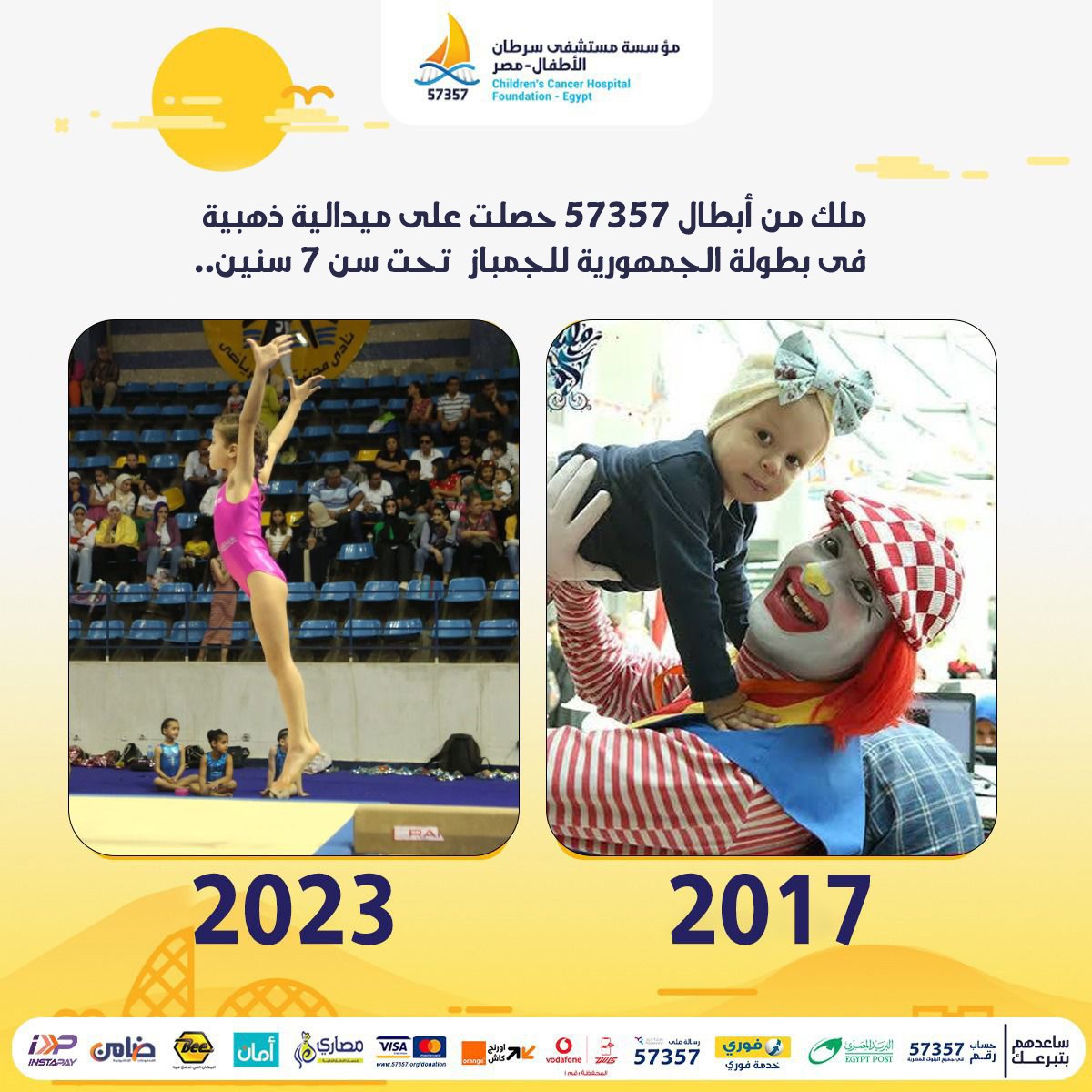I thank Dr. Emad Mousa, who was a father to my daughter not just a treating doctor, may God reward him and reward all the medical team, donors and volunteers for their efforts. Now, Malak likes the Hospital and wishes to become a doctor and to work for it. This is not weird as 57357 is the place that granted new life to many children. This is where they were surrounded with great care and love from staff and volunteers.