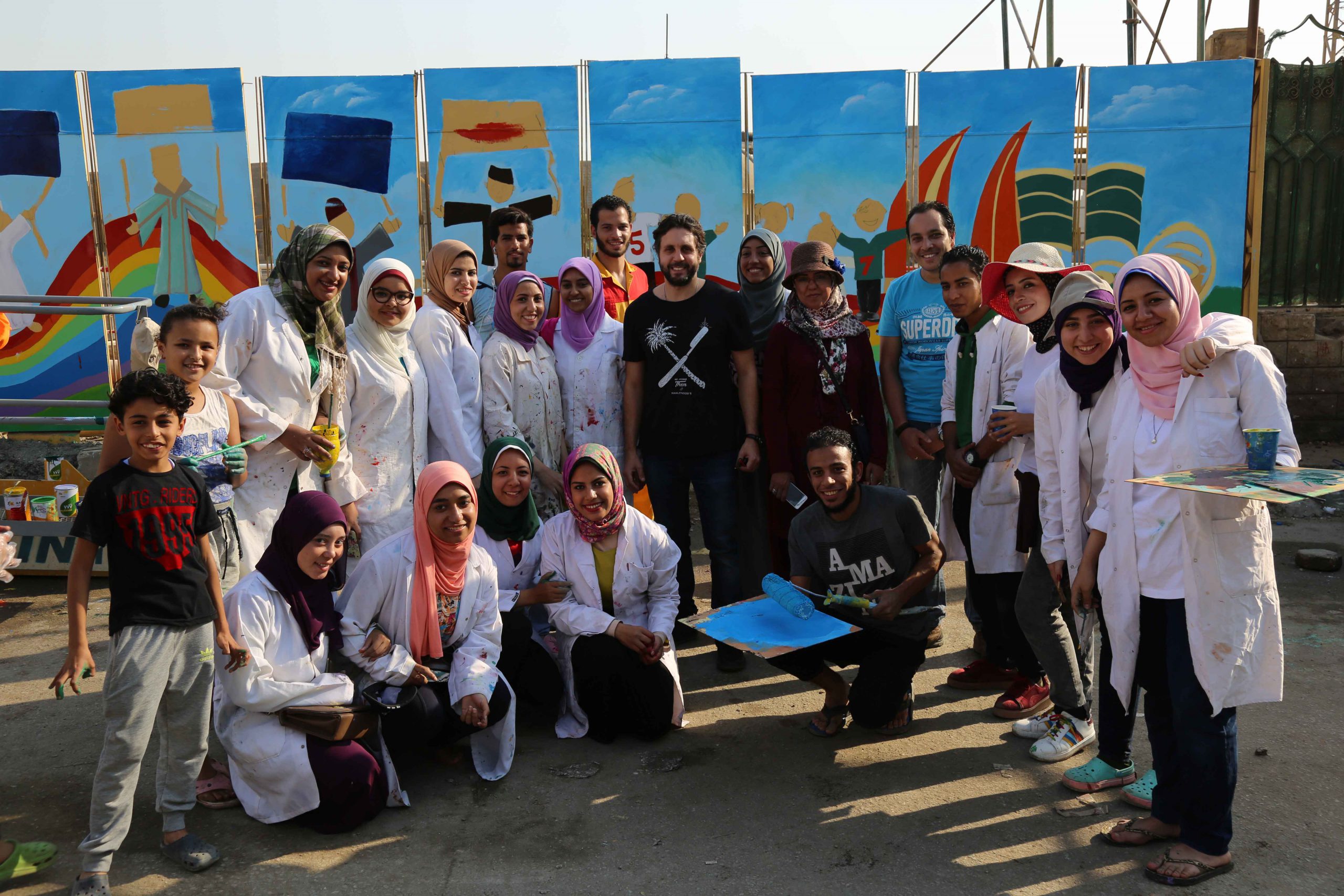 Students of artistic faculties of the Egyptian universities along with artists and media representatives participate in painting the fence of 57357’s expansions through the initiative “dream..draw..color”